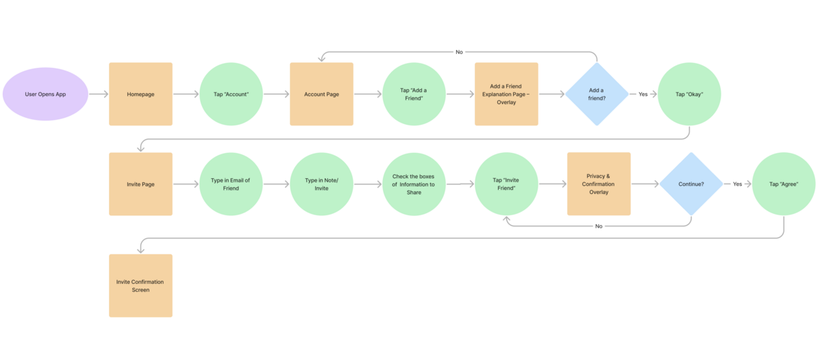 During the in-person usability test, when asked to communicate their process out loud, a participant communicated during the invite a loved one task that they were looking for an icon that communicated "share."